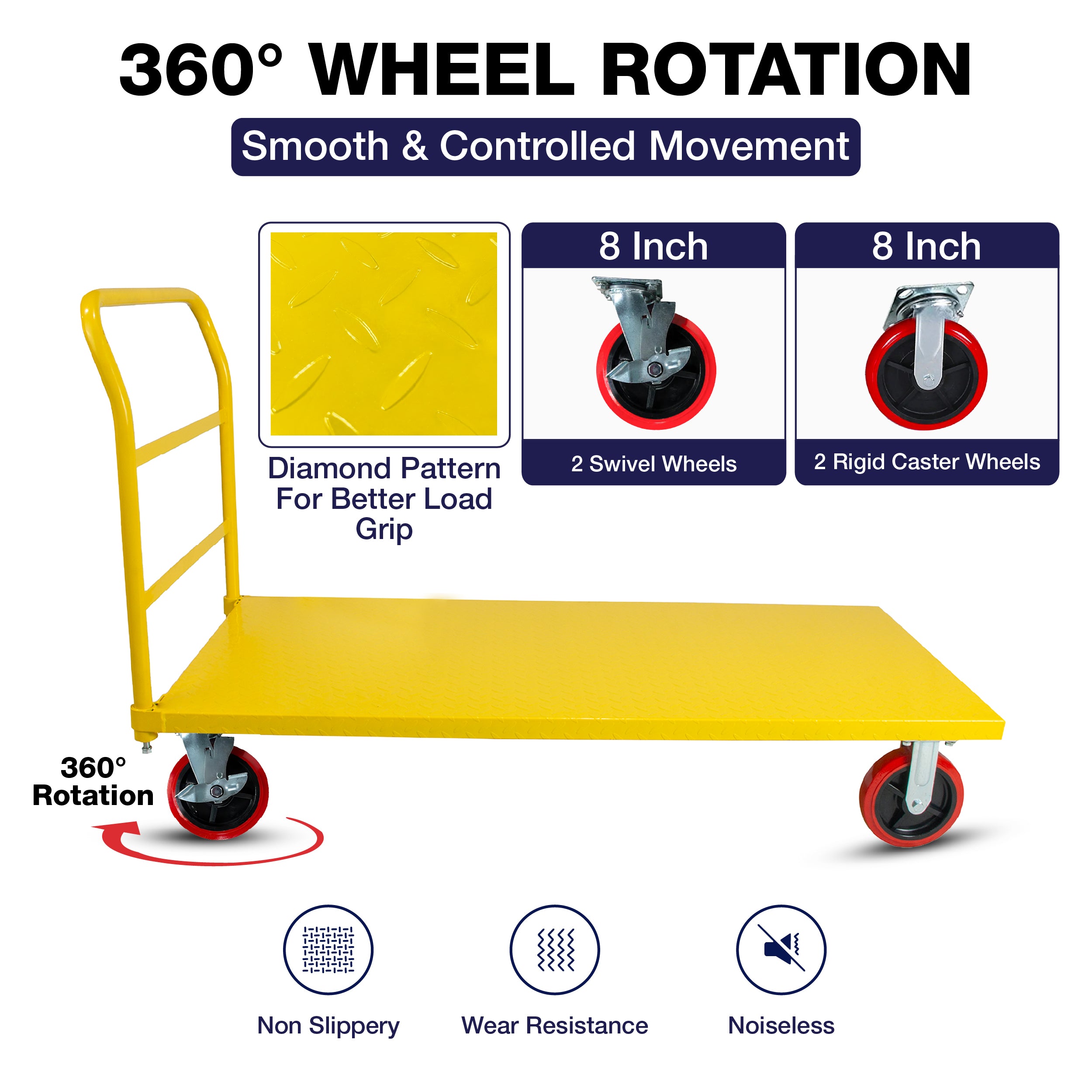 Easy Maneuverability: Equipped with 8" swivel wheels, this platform truck offers excellent mobility. The swivel wheels enable smooth and effortless movement.